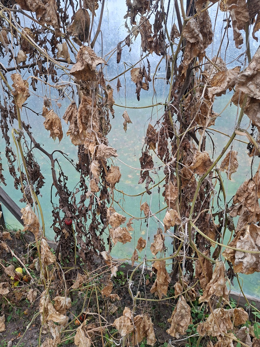 Tomatihooaeg on selleks aastaks läbi, seega parim, mida täna teha saad, on hahkhallituse ennetus. Korista täielikult kõik taimejäänused: varred, lehed, juured, närbunud õieosad ja mahakukkunud viljad. Ära jäta midagi nööri külge või mulda. Eemalda ja vaheta välja haigustunnustega sidumisnöörid, tilkkastmisvoolikute ümbert korista praht. Pese, veel parem desinfitseeri (nt peroksiidipõhise vahendiga), kasvuhoone konstruktsioonid, riiulid, potid, tööriistad.